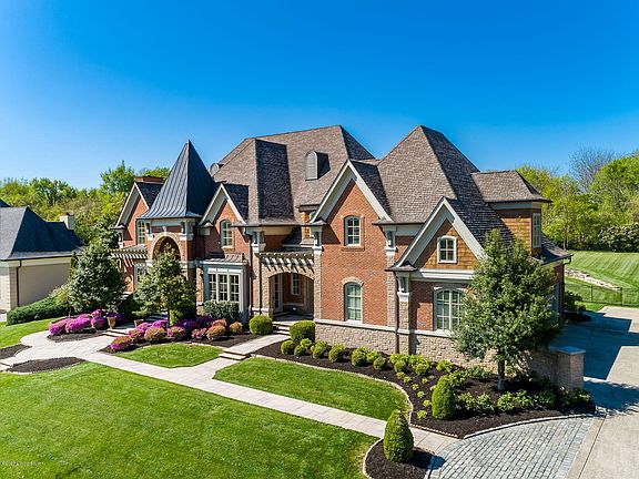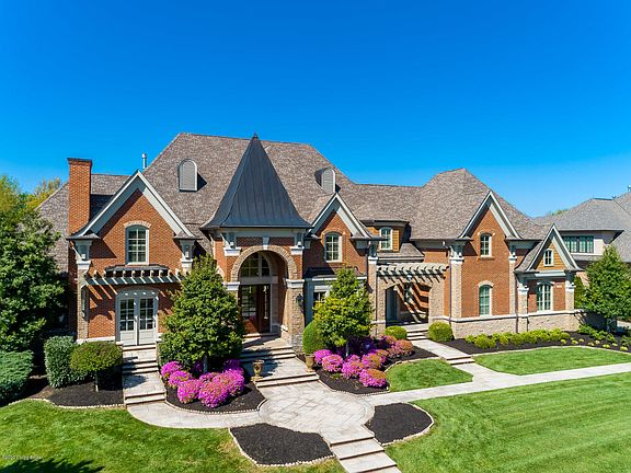 Located in one of Louisville's most desired neighborhoods, 5608 Harrods Glen Drive provides new meaning to lavish luxury as this home features over 10,000 finished square feet, five bedrooms, and six full bathrooms. As you approach the property, you will love the limestone walkway that leads to multiple entrances of the home including the mahogany double doors that open up to the two story foyer entrance. Upon entering, you will be greeted with a wide open floor plan, designed for, and ideal for entertaining. The first two rooms to greet your entrance are the spacious dining room that features custom trim and wainscoting and the lavish living room that features built-ins, a coffered ceiling, and a wall of windows that overlooks the backyard and patio. The open floor plan continues into the luxurious chef's kitchen featuring custom cabinets, granite countertops, a six burner, gas Viking stove, double ovens, warming tray, separate preparation sink, wine and beverage cooler and a Sub-Zero refrigerator. Directly off the kitchen is the hearth room featuring a stone fireplace, built in cabinets, and a vaulted ceiling with wooden beams that highlight the colors throughout much of the first floor. In close proximity to the kitchen is a half bathroom, dual pantry, and butler's pantry located between the main pantries and dining room! On the west side of the main floor is a large study boasting beautiful stained wood craftsmanship and it's own full bathroom. Nearby is the private, 1st floor master suite that contains all the features one would expect from a Harrods Glen property. Make your way to the second floor and you will find four spacious bedrooms all with walk-in closets and their own on-suite bathroom! The second floor also contains its own laundry room and a bonus room perfect for a second floor playroom, living room, or workout area! The space and openness does not stop on the main floor as the basement contains almost 3,700 square feet and includes a workout room, media room, mini kitchen with a granite topped bar, refrigerator, and dishwasher. The basement also features two extra rooms, ideal for guests, that are connected by a full bathroom. All three floors are accessible by an elevator designed for in need guests or transporting large storage items from floor to floor. Like many of the properties in Harrods Glen, 5608 sits on an almost 1 acre lot and has a perfectly flat backyard that is overlooked by an expansive covered limestone patio. The quality and craftsmanship is evident in every detail of this home and the possibilities are endless. Schedule your private showing today.