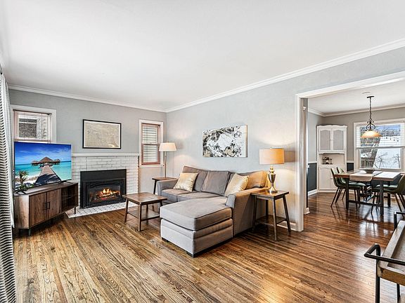 Charming home in high demand Kenny neighborhood. One block to elementary, middle school and park. Exterior was painted in 2020. Beautiful, refinished hardwood floors, enameled woodwork, gas burning fireplace, vinyl clad windows and spacious upper-level primary bedroom and bath. Large family room with adjoining flex room was recently painted and has new carpeting. Large laundry room with built in folding table and storage closet. Spacious work room with built in work bench and additional storage. Fenced backyard with privacy fence. Easy walkability to Minnehaha Creek.