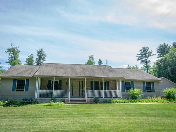 Incredible! An absolute must see! This beautiful home sits 17.47 acres of seclusion and is bordered by State Game Lands!! Property boasts 3 bedrooms, 2 bathrooms, geothermal heat pump, central AC, family room, sunporch, patio, covered front porch, full basement, attached 1 car garage with storage, oversized 2 car detached garage, storage shed, dog kennel, and a private drive. Will not last long!