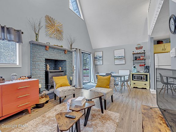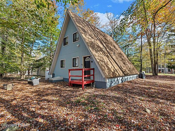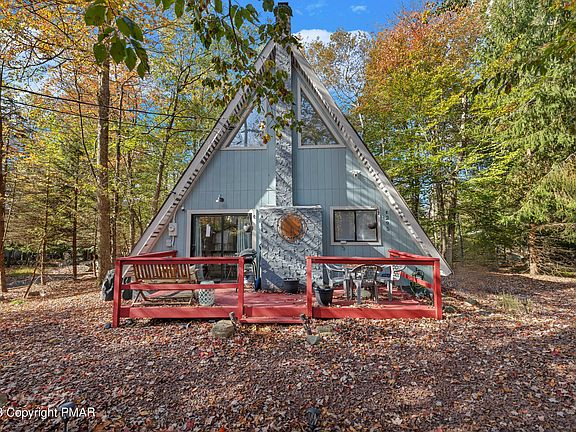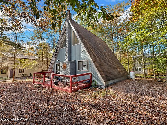 Nestled in the breathtaking Pocono Mountains, this charming A-Frame chalet presents a cozy haven with 3 bedrooms and 2 bathrooms. The property is being sold furnished and is ready for you to move in and make it your own. Situated in a secure gated community, you'll have access to a wealth of amenities that enhance your quality of life. Enjoy the pools, tennis courts, basketball courts, beaches playgrounds, dog park and much more! Immerse yourself in the natural beauty of the Poconos and experience the year-round attractions and activities that make this region so special such as Kalahari Water Park, Camelback Mountain, and Mt Airy Casino. Whether you are seeking a permanent residence, vacation retreat, or investment property this A-Frame chalet is the perfect unique place to call your own
