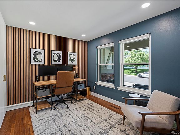 Welcome to 5608 S Geneva Street, a sophisticated 5-bedroom, 4-bathroom residence nestled in the prestigious neighborhood of Greenwood Village. From the moment you step inside, you'll be captivated by the grandeur of this home, where natural light floods every room through expansive windows, highlighting the exquisite finishes and impeccable design throughout. To the right, a refined home office offers a tranquil space for productivity, while to the left, a chic sitting room exudes elegance with its designer-inspired decor. The heart of the home is the gourmet kitchen, a chef's dream, featuring luxurious quartz countertops, high-end stainless steel appliances, and a functional island perfect for entertaining. The open-concept layout seamlessly connects to the inviting family room, complete with a custom-built media wall for a sleek, modern aesthetic, and flows effortlessly to the beautifully landscaped backyard through sliding glass doors. Adjacent to the kitchen, the formal dining room is adorned with a striking modern chandelier, providing the perfect ambiance for elegant dinner parties and gatherings. The upstairs is a private sanctuary, with a spacious primary suite that boasts lofted ceilings, exposed wood beams, and a spa-like en suite bathroom. Indulge in the luxurious features, including dual vanities, a generous walk-in closet, a deep soaking tub, and a separate walk-in shower. Two additional well-appointed bedrooms and a beautifully designed bathroom complete the upper level. The fully finished basement offers versatile space for relaxation and recreation, including two additional bedrooms and bathroom, a recreation area, and a workout space. This home also features a three-car attached garage, as well as a backyard shed for added convenience. Ideally situated across from community tennis courts and a pool, this residence offers an unparalleled lifestyle in one of Greenwood Village's most sought-after locations.