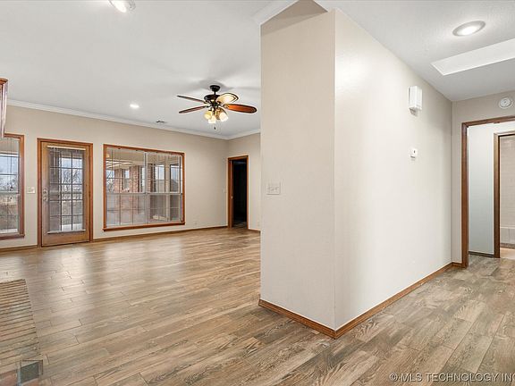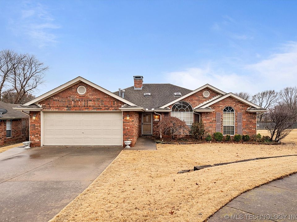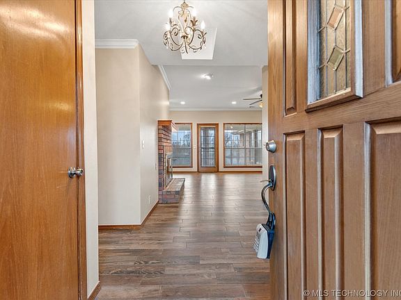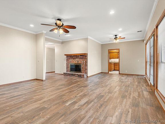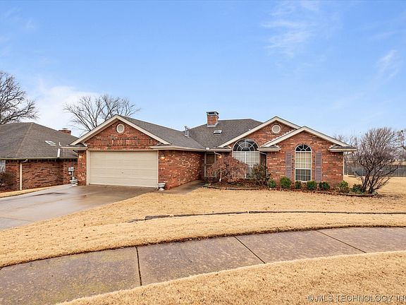 Beautiful One-Level Brick Home in Park Hill! Tons of natural light in this 4 bedroom, 2 bath, 2 car garage home with versatile floor plan. Nice crown molding and lovely flooring in living areas. Great Room has double fireplace open to cozy den area off the kitchen. Wall of windows viewed from all living spaces. 4th bedroom could serve as an office. Kitchen has granite countertops with pantry, cute breakfast nook and access to extended covered patio. 2 secondary bedrooms have vaulted ceilings, walk-in closet and near the extra-large hall bathroom with newer tile surrounding tub. Master split from secondary bedrooms. Master bedroom includes a private bath with 2 separate vanities, walk-in closet, remodeled shower, bathtub and access to patio. Desirable Park Hill location near Adams Golf Course, Schools and Sooner Park! New Roof Installed end of January 2024!