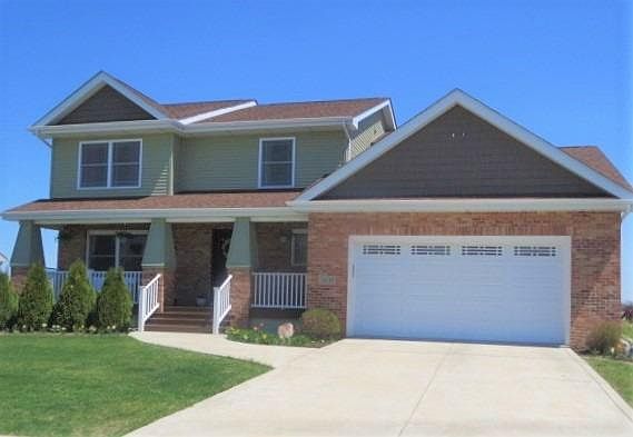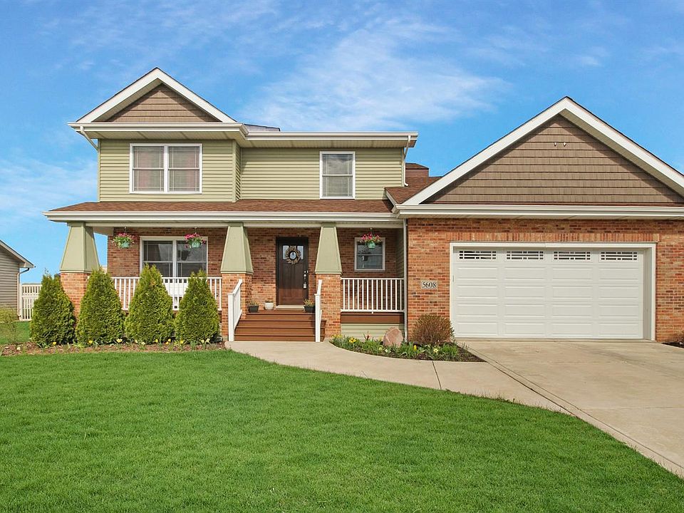 This lovely 5 year young 4 bedroom Craftsman style 2 story features a large covered porch, living room plus a large great room with fireplace on the main floor, a huge eat in kitchen with granite counters, stainless appliances and breakfast bar has sliding doors leading out to the deck overlooking the playground and bike/walking trail (no neighbors to the rear). Thee is also a half bath and main floor laundry on this level. The upper level features 4 bedrooms with ceiling fans. The main bedroom has a walk in closet and private bath. The finished basement features a playroom, office/craft room with built in cabinets, plus a half bath. The refrigerator in the basement will remain.