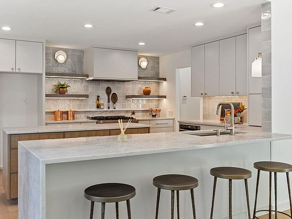 Welcome to The Butterfly House, a one-story home in Great Hills that has been completely remodeled from top to bottom. Every surface was updated, flooring, paint, cabinets, bathrooms, kitchen, and exterior. Creating a home that feels brand new while keeping its character. The open kitchen was designed for both cooking and gathering, with quartz counters, a white oak island, commercial-style 36 inch stainless range, appliance garage, beverage fridge, microwave drawer, and built-in pantry cabinets with pullouts. Custom cabinetry and soft-close drawers continue throughout the home, along with wallpaper accents, designer lighting, and white oak floors. The layout includes four bedrooms, two and a half bathrooms, two living areas, a separate office, and a laundry room. The primary suite features a spa-like bath with floating cabinets, mitered-edge quartz counters, and a scalloped soaking tub. The hall bath includes custom cabinets, a frameless glass shower, and arched mirror. Outside, the large, level lot offers space to spread out, with a pool, covered patio, and landscaped yard that’s ready for everyday living or entertaining. A rare find! Updates extend to the exterior with painted brick and siding, a new garage door, and fresh landscaping. Located in Austin Hills/Great Hills, you’re minutes from The Domain, Arboretum, Trader Joe’s, and major tech employers, plus neighborhood parks and golf. The Butterfly House offers thoughtful design, modern updates, and a central Austin lifestyle that’s hard to find in a one-story home.