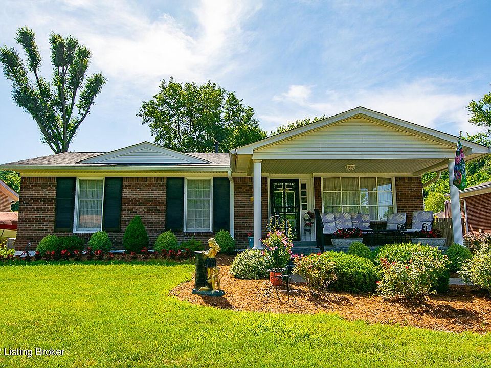 Nicely maintained brick ranch home with 2.5 car detached garage in Bella Vista! A charming covered front porch welcomes you & overlooks the nicely landscaped front beds. Enter into the living room (hardwood under carpet!) where an abundance of natural light flows from there to the dining room. Just off the dining room you'll find the eat-in kitchen with hardwood floors & access to the covered patio. Three bedrooms - all with hardwood floors - & a full bath complete the first floor. The finished lower level features offers plenty of space to spread out & use as a family room, play room, craft area & more! The laundry is located in the basement. Enjoy the outdoors from the covered patio overlooking the partially fenced backyard with some mature trees for a mix of sun & shade.