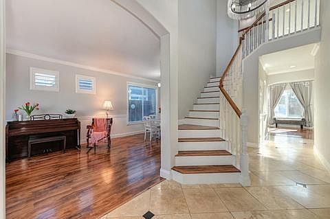 Ceiling fans in all bedrooms, living room and family room, crown moulding, new windows, large shutters in all upstairs rooms. Newly painted inside.