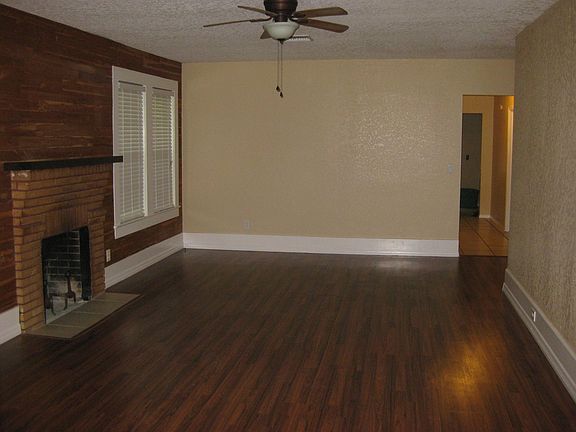 Check out this 1,250+ Square Foot 2 Bedroom, 2 Bathroom home located on a Beautiful, Mature Tree Lined .4 Acre Lot. Walk in from the front porch to an enormous Front Room / Dining Room with Laminate Wood Floors that stretch 25 Feet in length highlighted with a Brick Surround Wood Burning Fireplace in the center of the room. The Over-sized Master Bedroom with the same Laminate Floors is off to the right and measures 11.5' x 16.5' with tons of closet space. The main Bathroom has been renovated with Ceramic Tile, New Vanity, Counter tops, Toilet, Ect..... The Massive Kitchen that can fit an Army of Chefs is located in the center of the home with Light Maple Wood Cabinets and Stone Counter tops. The second Bathroom is located in the back of the home just off of the Inside Laundry Room. This house has been freshly painted with neutral colors and has new 2" Blinds on all the windows. Outdoor Shed for storage is also located on the property. Annual Lease with First, Last, & Security. Application Fee with Background Check Required. Tenant responsible for all utilities and required deposits.