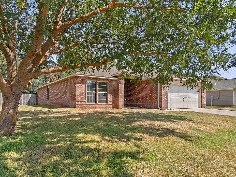 All-brick 3BR/2BA home in Price Farms Plantation offering 1,922 SF, a two-car garage, and a .36-acre fenced lot. This move-in-ready home features an open floor plan with luxury vinyl flooring in the main living areas. The kitchen includes granite countertops, stainless steel appliances, wrap-around breakfast bar, ceramic tile flooring, ample cabinetry, a walk-in pantry, and a separate laundry room. The private owner's suite offers double doors, a large walk-in closet, dual-sink vanity, soaking tub, and separate shower. Two additional bedrooms and a full guest bath provide comfortable space for family or guests. Enjoy outdoor living in the spacious fenced backyard with a covered back porch. No HOA. Conveniently located near Baker School with easy access to military bases and shopping!