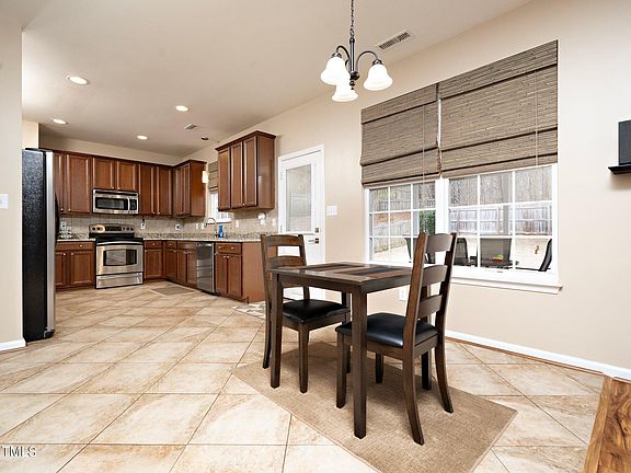 Location, location, location. 5 minutes to Brier Creek, less then 15 minutes to RDU. Short drive to downtown Durham, North Hills, downtown Raleigh. 4 bedroom 2 full baths 1 - half bath. Large open dining room and living room with updated RVP flooring (11/20). leads into the kitchen with STAINLESS STEEL appliances, GRANITE counter tops. Breakfast area and family room with FIREPLACE. LARGE main bedroom with vaulted ceiling. Dual sinks in main bath, walk in shower. FENCED backyard with covered patio plus a patio area great for grilling . 2 car garage. Roof replaced in 2021, HVAC replaced 2020. Updated water heater