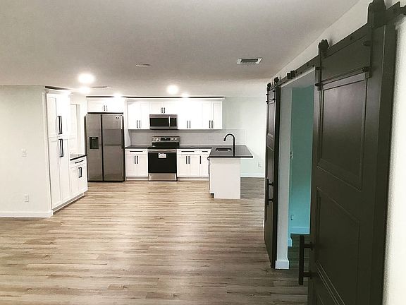 Stunning renovation on a huge lot in the heart of Down Town New Port Richey. Walk or golf cart anywhere! Brand new Roof, Brand new Impact windows and slider, new kitchen with brand new appliances. The list goes on and on. Top to bottom renovation. From the moment you walk in you'll take notice of the open concept floor plan which draws your attention out through a set of custom barn doors towards the beautiful back yard and surrounding tree canopies. This property backs up to one of the nicest alley ways in the neighborhood and with the city of NPR close to passing an AUD ordinance, the future possibilities are plentiful! Build that great garage apartment in the back and rent it out for extra income. Come by and take a look today.