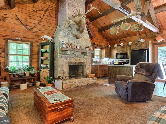 Lots of privacy with this gorgeous log home situated on 16.98 acres in Bethel Township. Beautiful views from this three bedroom, one bath home with detached over-sized two-car garage with electric. Features include stone wood fireplace in the living room with soaring cathedral ceilings, kitchen w/island, dining area with french doors to rear deck, full bath with tub/shower, two 1st floor bedrooms, one 2nd floor loft bedroom, lower level finished family room with wood stove/tempering tank, finished workshop, and laundry room with outside entrance to rear yard. Central air conditioning and central vacuum add to the amenities. At the south end of the property, there are two concrete raceways to raise trout. If you wish to live in a tranquil setting, this home is just right for you!