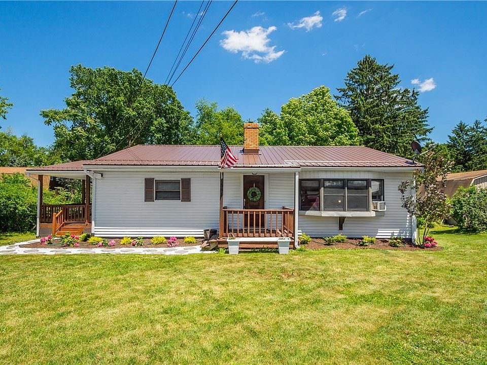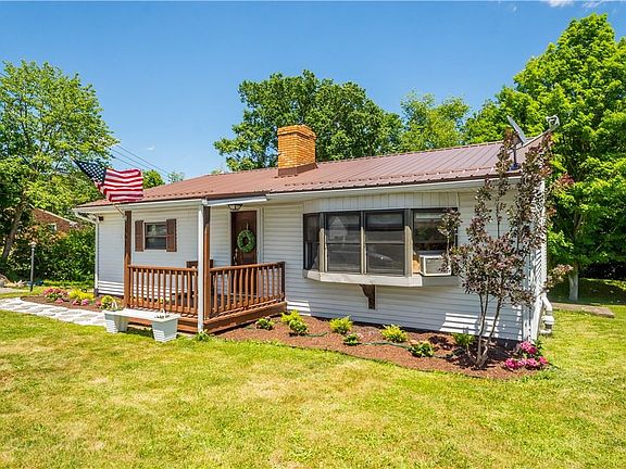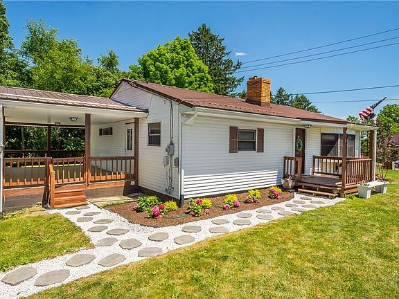 Looking for peaceful country living? This is YOUR home! Open concept floor plan offers breezy one-level living in a cozy cottage boasting charming vintage features and outfitted with fantastic updates. All on a quiet, low traffic street with easy access to all amenities incl. Cranberry Twp. Updates include; fresh paint, all brand-new carpet, all lighting and ceiling fans upgraded/replaced, and new blinds on all windows. So light and bright! Bathrooms boast new vanities, toilets, and waterproof, scratch-proof flooring! A classic two-sided fireplace creates a great atmosphere in the living room with it's gorgeous warm wood paneling on one side, and the large eat-in kitchen with backsplash, deck access and appliances that stay with the home on the other fireplace facing side. Enjoy a roomy owner's bedroom with 2 big closets and built-ins. Move right in and host large parties this summer in the spacious yard and covered patio - perfect for a grill with new outdoor carpet just installed!