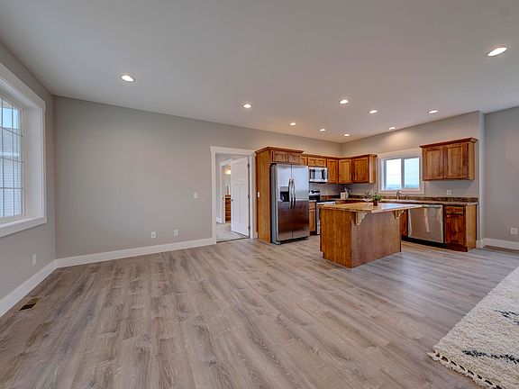 Excellent floor plan with separated bedrooms/bathrooms on each level perfect for privacy. Bighorn mountain views galore from the main level and walk out basement with large windows to soak it in. Open Living. Kitchen/eating room flanked by an owner suite on one side and bed/bath on the other. Spacious family room in the basement leads to the patio. Privacy fences are allowed. Keep your fun near! Extra vehicle/toy parking can be rented from the HOA for $15/month/vehicle. Quality construction by Q. Construction.