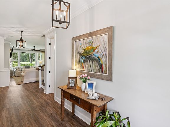 Welcome to 561 Audubon Wynd. A spacious low-country home with sweeping golf course views from both the front and back porches, overlooking the #1 putting green and #2 tee box. The owner’s suite is located on the main level with a luxurious ensuite bath. The cozy living room flows into an open-concept kitchen featuring stainless steel appliances, quartz countertops, bar seating, and a breakfast area, plus a bright dining room ideal for entertaining. An additional oversized den upstairs offers the perfect space for gatherings. Upstairs also features three bedrooms and two full baths with an additional stackable washer and dryer option. This home is located in the beautiful neighborhood of Sanctuary Cove. It is a gated golf course community with pool, river house clubhouse, walking paths throughout the neighborhood, tennis, fitness center, rv/boat storage and a floating dock for fishing and/or drop-off and pickup during the day on the Little Satilla River. Sanctuary Cove is located off I95 and 45 minutes from the Jacksonville airport, 20 minutes from the Brunswick airport, which services Atlanta, and one hour from the Savannah airport. Seller is a licensed real estate agent in Georgia.