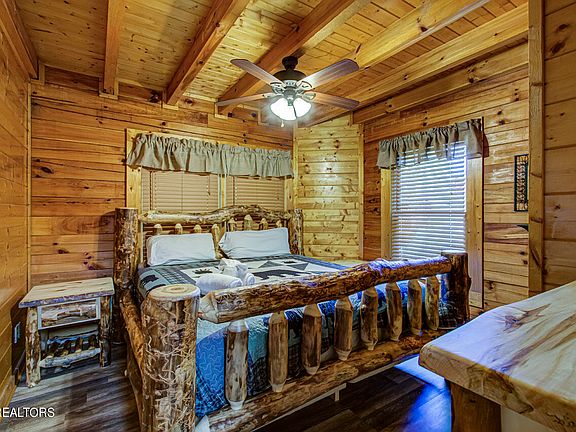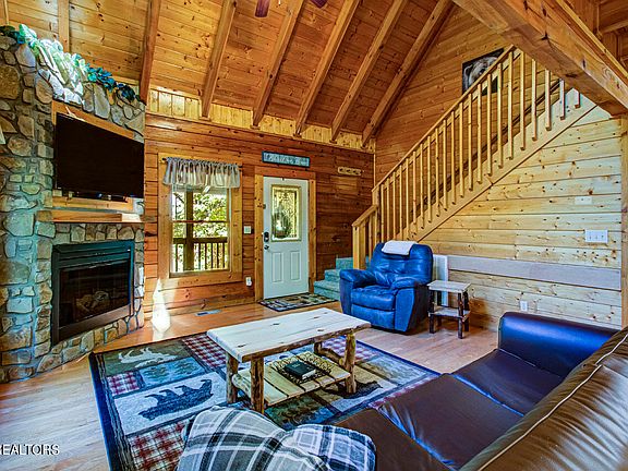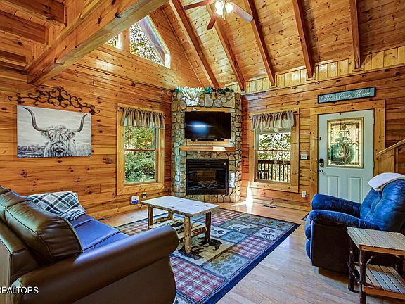 You will love this 2 BEDROOM 2 BATH LOG CABIN with GAME area in the heart of downtown Pigeon Forge. This well maintained cabin is nestled in the desired Blackberry Ridge Resort - at the cul-de-sack for your privacy and enjoyment. When you walk into the cabin, you are greeted with by an open living space with gleaming hardwood floors throughout, and floor to ceiling fireplace. KING size master bedroom on the main floor. Upstairs there is spacious bedroom featuring another KING SIZE master suite and an airy loft with games and private wooded views. ALL FURNISHINGS CONVEY AS CONVENIENCE TO SELLER. You will love the screened in back deck with a swing and bubbling hot tub. Cabins is in the heart of Pigeon Forge attractions, minutes from Dollywood. No crazy mountain roads, easy to get to.