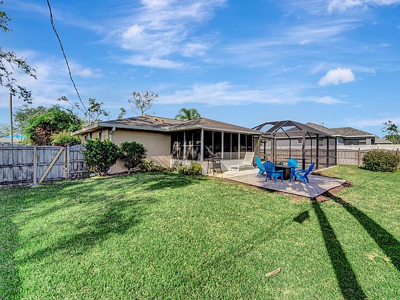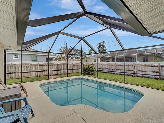 This is a monthly vacation rental available through December 31st. $200/month utility fee which includes electricity, TV, Internet $200 one-time cleaning fee. Located just ten minutes from the beach. An open concept, luxury vinyl plank flooring. The living room has comfortable leather furniture with plenty of room for your whole group to lounge and features a huge 50' smart TV connected with tons of free TV shows and movies plus you can connect to your favorite services as well. In the kitchen, in addition to the major appliances, you'll find all of the cooking essentials to prepare and enjoy a simple or gourmet meal after a day basking in the sun or adventuring. The private back heated pool and lanai is likely where you'll want to dine and spend most of your time. Have an afternoon cocktail on the lanai while watching sports or chatting with your loved ones before transitioning to dinner alfresco. The backyard has been beautifully landscaped and is surrounded by a privacy fence. The home has two bedrooms and two bathrooms, with comfortable sleeping arrangements for four guests. Two bedrooms have new, high-quality king & queen mattresses, and there is also a queen sized air mattress. Your stay includes the softest bed linens and towels. The master bedroom as well as the lanai has a TV with Roku which has tons of free TV shows and movies plus you can connect to your favorite services as well. The home is located in a quiet, safe neighborhood. Not only is it only ten minutes from the beach, but also endless shopping, dining, and entertainment options; we're happy to provide suggestions upon request. Please don't hesitate to reach out if you have questions before booking or before/during your stay. We're committed to ensuring you have a wonderful, hassle-free vacation. $200/month utility fee which includes electricity, TV, Internet $200 one-time cleaning