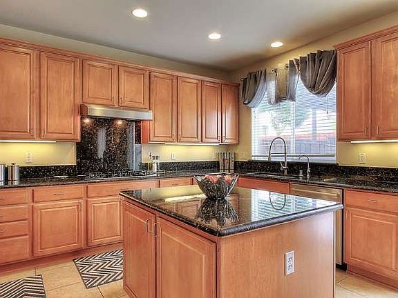 Beautiful & meticulous home and yards, slab granite kitchen cBeautiful & meticulous home and yards, slab granite kitchen counters, island with wine cooler, stainless appliances, gas cooktop, 4 BR + den/office with French doors, 1 BR down, 18 inch tile flooring downstairs, commercial R/O water filtration system, large back yard features a stacked-stone BBQ area with granite counter, Pergola has track lighting, freshly painted patio and walkways, large firepit, stone block retaining wall, lots of color and palm trees. Very nice property.