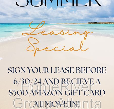This property qualifies for the Hello Summer Leasing Special that provides a $500 Amazon gift card at move in for all leases signed and security deposits paid on or before 6/30/24 (one gift card per household)
