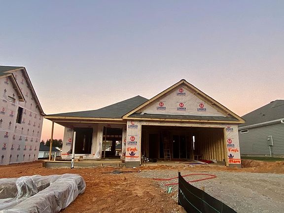 Welcome home to the charming Jackson 3 plan. The welcoming rocking chair front porch. Large great room that is open to the kitchen and dining area that is great for entertaining. The kitchen is awesome with lots of beautiful granite counters and full tile back splash. You have a breakfast bar and a kitchen island. Stainless steel appliances and pantry. The foyer, great room, kitchen, and dining space have waterproof Evacore click flooring that is great for pets. The owner's suite has a trey ceiling, en suite bath which features dual vanities with cultured marble counter tops and framed mirrors. Separate shower and soaking tub. Large walk in closet. 2 other bedrooms and bath complete this lovely home. Sprinkler system. Smart home security system. Programmable thermostat.