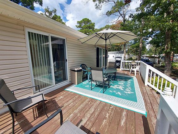 Enjoy this adorable seasonal mobile home in the Down the Shore Resort. Beautifully decorated with 2 full beds in the bedrooms, living room with a full thick comfy futon and a queen sleeper sofa for all your guests. The easy to maintain backyard is ready for your next picnic and fun times with a picnic table, fire pit and plenty of room for outdoor games. The large deck is perfect for entertaining. Down the Shore Resort has fun activities for all including a lake with a beach, swimming pool, pickle ball court, basketball court, mini golf, arcade and outdoor movie screen. Don't miss your chance to enjoy a little fall weather around the cozy campfire and many summer seasons to come.