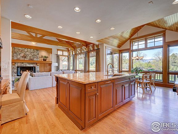 NEARLY $100K PRICE IMPROVEMENT! You will not find another home in Boulder at this price point featuring this attention to detail and workmanship. Only one owner, a custom home builder, has poured all his energy into making this a home not to be missed. You will love the custom Cherry cabinets and millwork and the expansive west-facing mahogany deck. Perfect location! Only 10-12 minutes to both CU and downtown Louisville. Nearly every room boasts mountain views including the Flatirons, with the views getting better in the winter when leaves are off the trees. Vaulted ceilings throughout. Entertain guests in your high-end kitchen and adjacent family room that spills onto the generous deck, while your kids host friends in the plush, walk-out garden level entertainment area. Or use the garden level walk-out suite, with its own separate kitchen, as an independent living space. Wake up and enjoy the sunrise glow on the mountains from the large, main-level primary bedroom, and take an evening soak in your tub while stargazing through perfectly placed skylights. This nearly one-acre property is meticulously landscaped and designed by famous gardener Lauren Springer. The house is connected to City of Lafayette water while the yard is watered by a well. TWO garages give ample room for cars, trailer/RV, storage, toys and a workshop with magnificent views. Every detail you want is here - views, privacy, award-winning schools, office space for remote work - this unique property has it all. NO HOA fees. Only minutes from downtown Boulder and Louisville. Make this quiet street, neighboring a vast farm on conservation easement, your family's destination home.