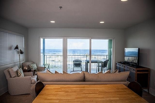 Commodore's Retreat is one of the best-kept gulf-front secrets on 30A! This highly desirable corner unit - with views of the beautiful gulf in front of you and one of 30A's rare coastal dune lakes to your left - won't last long. The wonderfully secluded beach allows you to get away from it all - but it's only about a mile from Seaside and all it has to offer. Put this on your 'must see' list! The unit is tastefully furnished in a comfortable coastal motif with new tile flooring throughout. With a king size bed in the bedroom, bunk beds in the hall and a queen sleeper sofa in the living room - you can sleep 6 easily. The latest hurricane rated sliding doors open onto your private deck and those breath-taking views. This first floor unit is actually like being on the second floor because