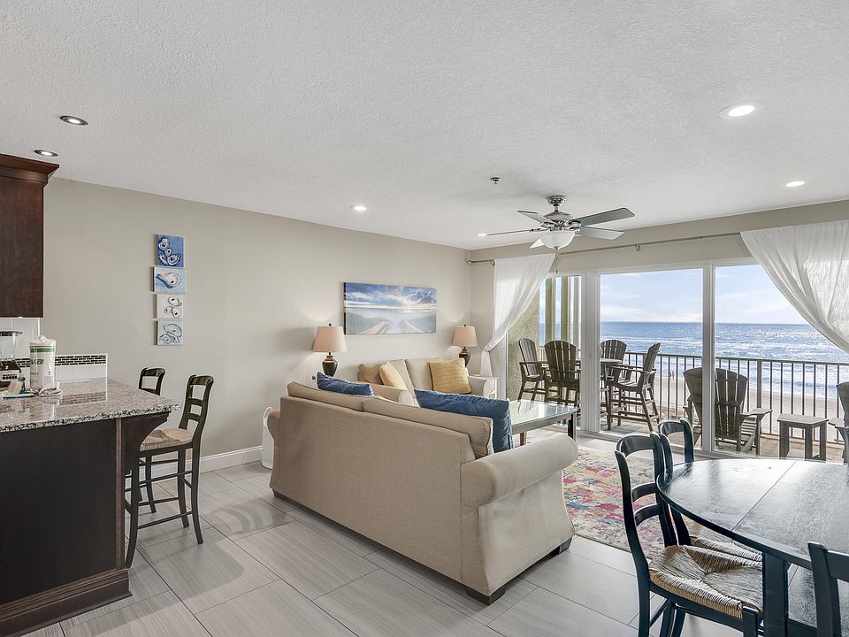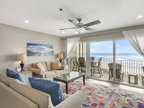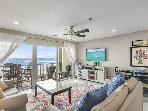 This property has a one-bedroom Master Suite and one bath and features built-in hall bunks for additional sleeping quarters for guests. The condo, which sleeps 6 comfortably, offers a spacious gourmet kitchen with beach views, overlooking the beachfront living room and a private gulf-view balcony. The laundry room is outfitted with a front-load washer/dryer.