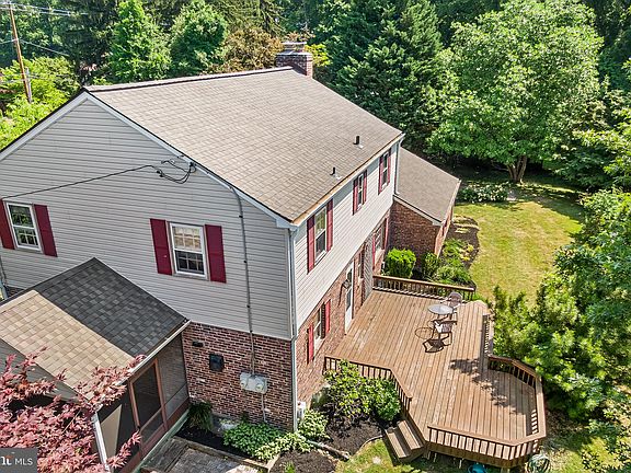 Professional photos coming Saturday. Great opportunity, this spacious two story brick colonial in charming neighborhood has 4 bedrooms, 2 baths, and 2 powder rooms. A large living room with brick fireplace adjacent to a paneled study with beam ceiling, great for activities. The dining room has an outside entrance to screened in porch, the kitchen is eat in and there is a rear outside deck, powder room is in rear hall. The second floor has four bedrooms and two full baths. There is a hall pull down stairs access to attic, and two hall closets. The basement has a family room with built-ins, a kitchenette, pantry closet, storage closet, powder room, and laundry area. New roof with new gutters and downspouts (2023). Property is on .488 acres and easy access to shopping, hospitals, trains, and trolley.