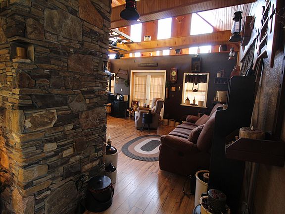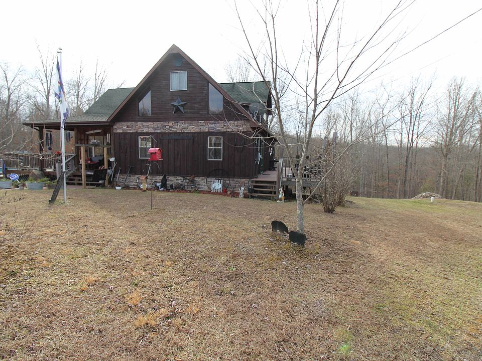 Cabin situated on 2.3 acres +/- with 2 bedrooms and 2 bath. Living room has large fireplace made from stone. Hardwood flooring and ceramic tile in rooms on main floor. Large wrap around deck and above ground pool provide a nice place for entertaining family and friends. House has an unfinished basement with plenty of room for storage of extra items. Property offers privacy but is located approximately 30 minutes to US-460 W.