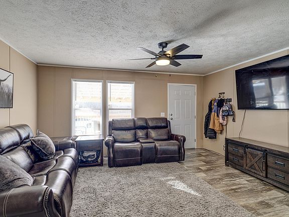Looking for a home that will go FHA or VA? This is the home for you! Sitting on a 1.39 acre lot, this 2024 Manufactured home boasts 4 bedrooms and 2 baths. The house is 1500 sq feet with an open kitchen, living room, dining room, and den offering an inviting interior and provide the perfect place to entertain. The four bedrooms provide ample space for rest and relaxation, and the two bathrooms feature modern fixtures and finishes. Outside, the property is fully fenced, ensuring privacy and security. The carport, enclosed on three sides, offers convenience and protection for your vehicles. In addition, a storm shelter provides peace of mind during inclement weather and a 10 X 16 storage shed adds practical storage solutions. The backyard is privacy fenced, making it great for gatherings or simply enjoying quiet moments. Experience the joy of rural living with the convenience of modern amenities in this 2024 model manufactured home. Don't miss the opportunity to make this property your own, schedule a showing today!