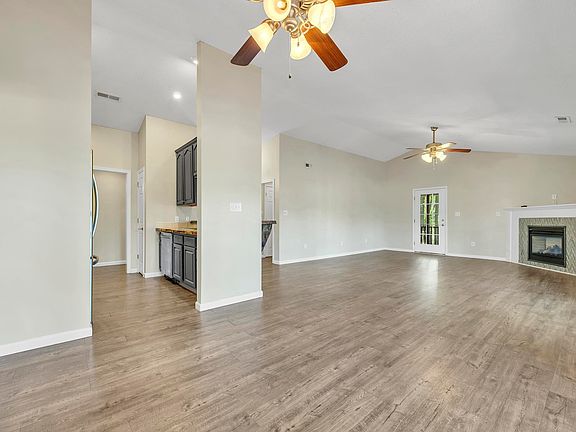 Secluded and hidden from road, a little over a half acre, 3bedroom 2bath, with open floor plan, looking out on pond and golf course. A 52' deck off of the back of house with private screen porch off master. Custom counter tops, stainless appliances , enclosed storage room downstairs under house, Propane fireplace, paddle fans in all bedrooms, and voluntary HOA, bring your boat, and camper, golf course just on the other side of pond, enjoy the activity and wildlife.