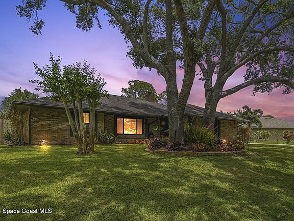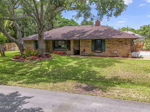 FANTASTIC LOCATION IN THE HEART OF PALM BAY! This beautiful home has 1,850 square feet of living area with 2,764 total square feet under roof. Front covered porch welcomes you into this 4 bedroom, 2 bathroom home. Interior features include: Entrance foyer, living room, dining room, kitchen with dinette eating, family room with wood burning fireplace, split plan with primary bed and bath on one side and the other side, 3 bedrooms and a pool bath. Exterior features include: Covered backyard porch, sparkling swimming pool with screen enclosure, large yard (.37 of an acre) back yard with new 6 foot wood privacy fence. Two car side facing garage, large parking pad, lemon, avocado and banana trees, manicured landscaping, mature trees, newer window and hurricane shutters, newer roof (2021) new plumbing pipes, inside and out (2025). Located just minutes to shopping mall and dining. East Coast Beaches are also very close. Call today to see this amazing home!