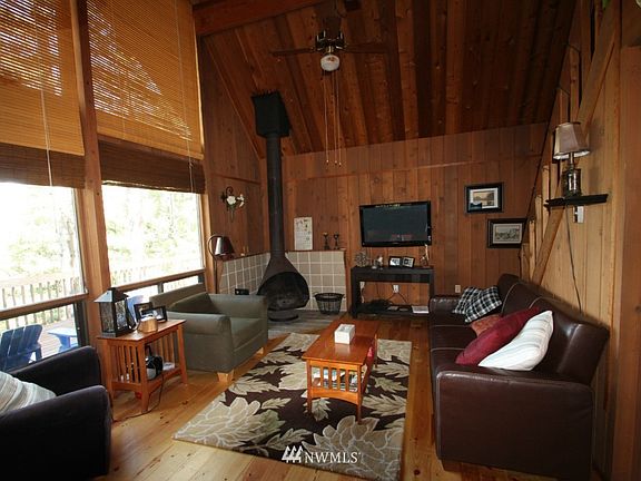 Nice Lake Cle Elum view from this cozy cabin in Pineloch Sun! This cabin features upper and lower decks, breakfast bar in the kitchen, a spacious loft, sleeping area + bonus room in the basement, and a wood burning stove to keep you warm in the winter. Community benefits included clubhouse with swimming pool, sport courts, and beach access to Lake Cle Elum.