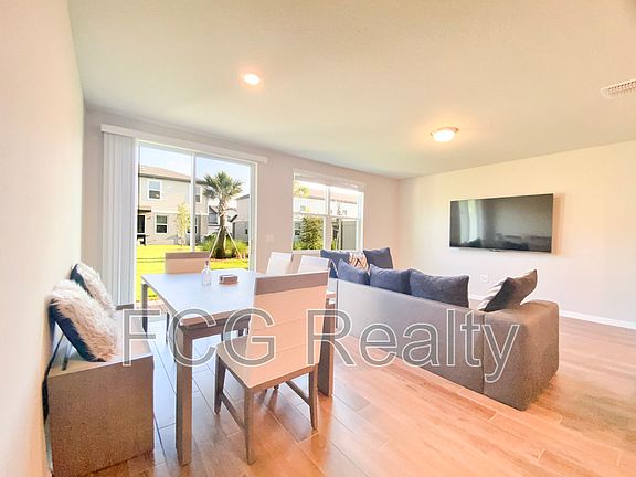 FREE APPLICATION AND $200 RENT CREDIT!! This 3 bed 2.5 bath townhome is ideally located close to Champions Gate and Reunion Village where you will find an abundance of shops and restaurants. The townhome comes with a 1 car garage with an automatic door opener. As you enter you will love the spacious floor plan. The kitchen has a walk in pantry, 42 inch white shaker cabinets, granite counter tops and stainless steel appliances. Featuring a large island which can easily accommodate some bar stools to enjoy your meals. The half bathroom is located downstairs. The community has a children's playground and is just a short distance from exit 58 on the I4.