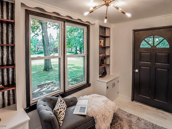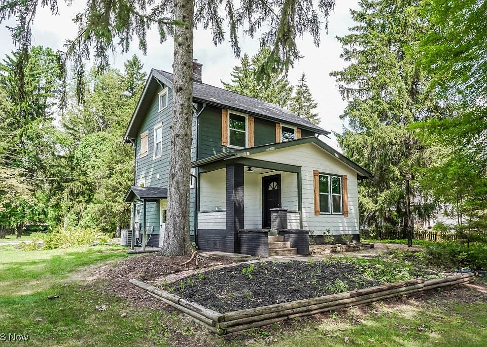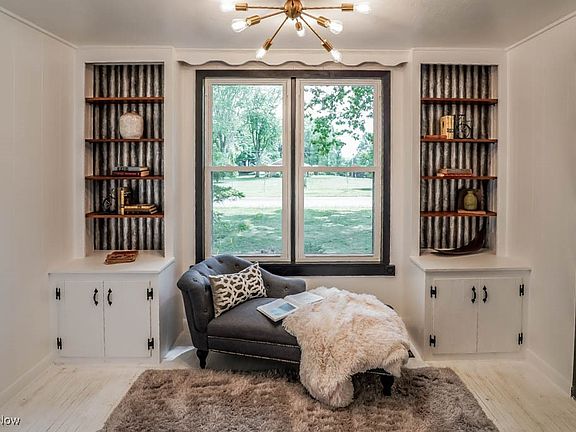 Beautifully remodeled century home with modern style, farmhouse charm, and a spacious acre of land! The inviting front porch leads you to a cozy sitting area and welcoming living room. An archway opens to the dining room, where a sliding door hides the 1st floor laundry and butler's pantry. The kitchen features striking black cabinetry, quartz countertops, open shelving, and a wet bar flanked by pantry cupboards. A sunken family room offers a relaxing spot with a wood-burning fireplace, guest bath, and sliding door to the brick paver patio. The back stairs lead to the primary suite with its ensuite bath, featuring a shower with decorative tile. The main staircase takes you to the secondary bedrooms, one with a secret door that opens to the master! The main full bath includes a tub with a tile shower surround. An oversized two-car detached garage completes the home. Recent improvements include a new roof, gutters, downspouts, furnace, A/C, windows, hot water tank, electric panel, well holding tank, and more. Schedule your showing today and discover all this wonderful home has to offer today!