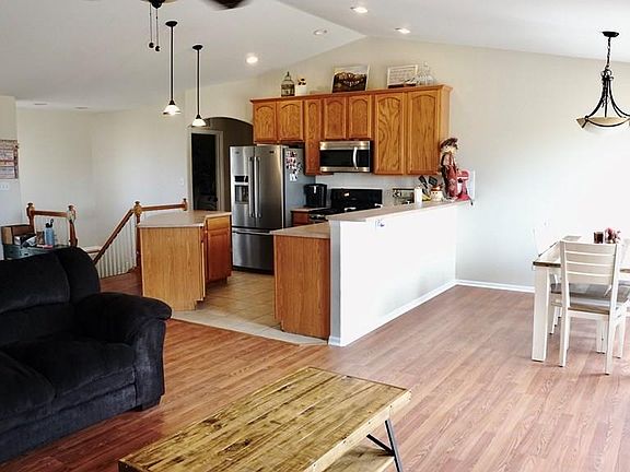 Great family rancher with 5 bedrooms, 3 baths and a 2 car garage attached. Home features a split bedroom design on main level. Big open concept with vaulted ceilings and lots of windows for natural lighting. Kitchen has a good amount of cabinetry, stainless steel appliances with a new refrigerator, island with extra counter-top work space and an eat-in bar/dining. Master bedroom with its own private master bath and a large walk-in closet. Good size guest bedrooms. New flooring in living room/dining. Basement is Partially Finished/Livable with very little to be finished off, it has two conforming bedrooms, a full bath and a big storage room. All that is left is the unfinished family room. All major components of the home have been replaced within the last year with a new furnace and AC unit, new water heater. Home is also energy efficient with a new 7.6 kw. 240 volts solar panel system. Sits on 1 acre with a fenced back yard. Close to shopping and local schools with a convenient location.