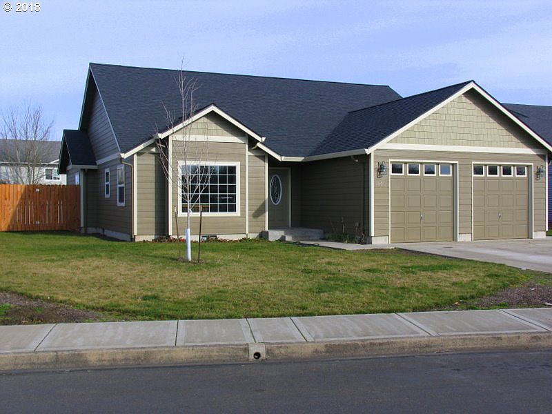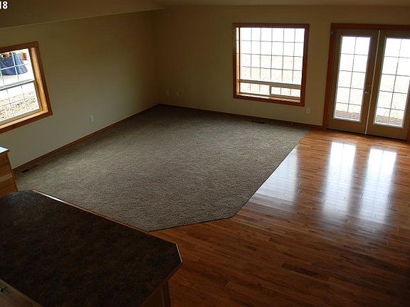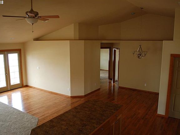 Spacious vaulted great room. 3rd bedroom is designed to also be a nice office/den. Hardwood oak floors, custom hickory cabinets, SS appliances, solid core interior doors. Finished garage with lighted storage in attic. French doors in living room open to 12x8 deck in backyard. Room on side of garage for possible RV parking.