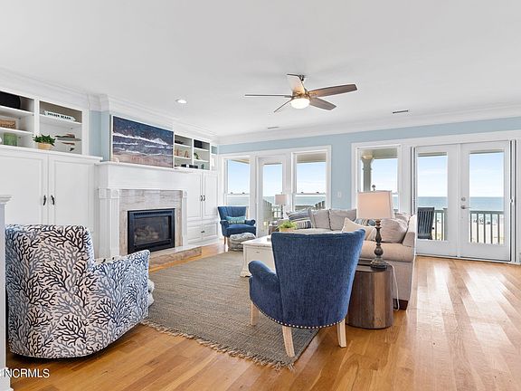 *** This home is on a vacation rental program and consistently has renters- gross rental income over $100K/year*** This gorgeous oceanfront 4 bedroom/4.5 bath home comes fully furnished. Newer roof and flashing along with fresh exterior paint. This home is well appointed and has an elevator (with a new gate) to the top floor for ease of access. In addition, there's hardwood floors in the main living areas and wide crown moldings throughout the home and bead-board in the staircase. The gourmet kitchen features a newer gas cooktop in the island, wall oven and built-in microwave, granite countertops, ample cabinetry and counter space, wine cooler and walk-in pantry. There's plenty of seating in the adjacent dining area. The living area overlooks the ocean and features built-in cabinetry along with a gas log fireplace. Newer smart tv's throughout the home. The oceanfront primary suite on the first living floor features a king-sized bed with an additional flex space with a pull-out sofa. Retractable screens and custom window treatments. Large primary bath with walk-in shower, dual vanities and corner tub.
