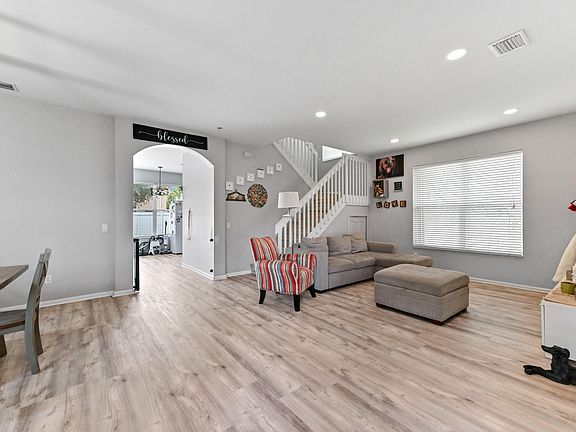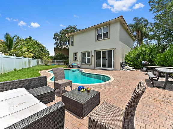 This stunning 5-bed, 3-bath pool home offers the perfect blend of elegance and functionality, showcasing a thoughtful layout with exceptional use of space. The living areas seamlessly flow from room to room, providing an ideal setting for both entertaining and everyday living. Each room is thoughtfully designed to offer comfort and privacy. The kitchen features modern appliances, ample counter space, & stylish cabinetry. New AC (2023) and water heater (2024) The adjacent dining area is perfect for hosting family dinners or intimate gatherings. Large windows throughout the home flood the space with natural light. Situated on a unique pie-shaped lot, the outdoor space is both expansive and private. Lounge by the pool surrounded by lush landscaping. This home is equipped with accordion hurricane shutters, providing peace of mind.