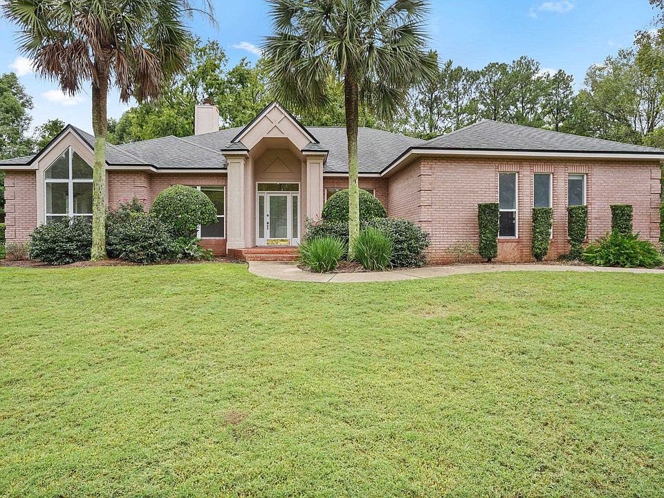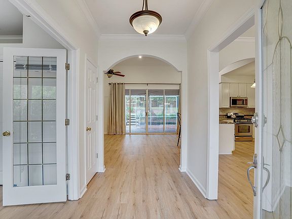 Beautiful single-story pool home in Pine Tip Hills, nestled on nearly an acre and featuring new flooring and interior paint throughout. The functional floorplan offers formal dining, open living space with gas fireplace and kitchen with bartop seating, home office, and separate family room with wet bar. The family room could easily be transitioned to a fourth bedroom. Features include 2016 roof, vaulted ceilings, arched entries, and a light and bright interior. Spacious primary suite with soaking tub, separate shower, and walk-in closet. Large screened porch opens to fenced backyard with pool, patio, and plenty of room for outdoor entertaining.