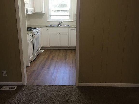Recently remodeled 3 bedroom 1 bath house. It has new cabinets with granite countertops and subway tile back splash, new windows, roof, HVAC, LVT wood floors, carpet and paint. It comes with dishwasher and gas range and has a fenced back yard. Pets are welcome with a $400 pet deposit.