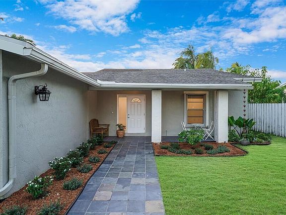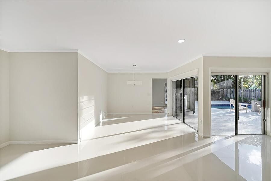 This beautiful three-bedroom pool home in Weston offers an A+ school district and a prime location. The open floor plan features high ceilings, large windows, and abundant natural light. The modern kitchen boasts stainless steel appliances, a farmhouse sink, a pot filler, and ample storage. The primary suite includes a walk-in closet, dual sinks, a vanity, and modern fixtures. Enjoy a private backyard with a pool, outdoor shower, covered patio, and lush landscaping. A two-car driveway plus street parking is available, and there is no HOA. The prime location includes tennis courts across the street and zoning for top-rated schools: Indian Trace, Tequesta Trace, and Cypress Bay. It's also near parks, shopping, dining, and highways. COURTESY OF Radish Homes Realty