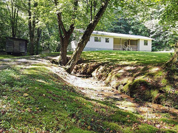 HOME ON 1.50 ACRES WITH NO RESTRICTIONS. This 2/1 ranch home has a large living room, dining area and kitchen that includes refrigerator and range. Off the kitchen is a deck area where you can BBQ. The master is private and very spacious. Home has all new subfloors and floor covering. There is a covered front porch that you can entertain family and friends or relax with your morning coffee and enjoy the view of Wolf Knob mountain and listen to the creek trickling by. Circular driveway for easy access. Short walk to USFS and a few minutes from Dukes Marina. Perfect for first time homebuyer or investment rental property.