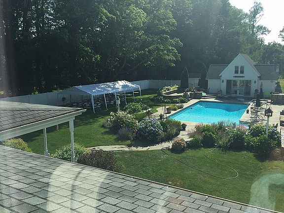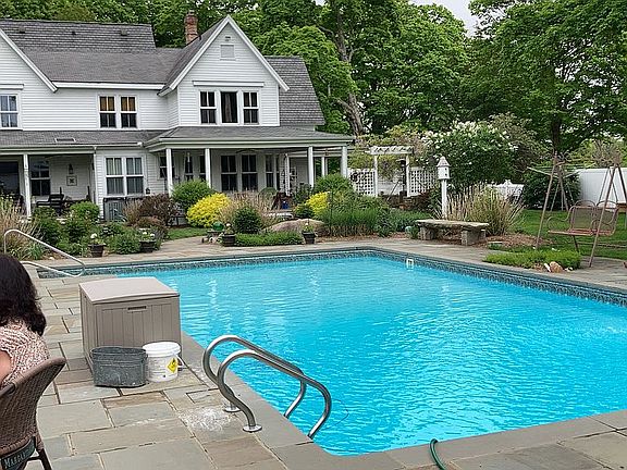 Modernizes gothic farmhouse on picturesque yard. In ground swimming pool, outdoor kitchen and stone pizza oven