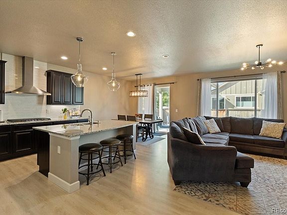Discover the elegance of this exceptional ranch home nestled in the heart of Prairie Star. Upon entering, you'll be greeted by a grand entryway with wood floors and soaring ceilings. The open and flowing floor plan features a chef's kitchen at its heart, complete with large granite island, gas cooktop, ample cabinet space, and pantry. The kitchen seamlessly connects to a light-filled dining and great room, perfect for both entertaining and everyday living. The home boasts tall ceilings and expansive windows throughout, bathing the interior in natural light. The great room is generously sized and inviting. The luxurious primary suite is thoughtfully located on one end of the home, with an en suite bath and spacious walk-in closet. On the opposite end, you'll find two additional bedrooms and a bath, offering privacy and convenience. Enjoy one level living with laundry and separate mudroom/cubby area leading to the garage. The garage is a standout feature, drywalled, spacious, with high ceilings, a workbench, and including a 220-volt outlet for EV charging. Relax and entertain on the covered back patio, overlooking the beautiful fenced yard. Prairie Star is a premier neighborhood with pickleball, tennis & basketball courts blocks away from your new home, as well as play areas, open spaces, community gardens, and dog parks, with miles of hiking/biking trails nearby. Let's talk about location: this standout neighborhood is located just across the street from TPC Colorado Golf Course, walking distance to Starbucks, and is conveniently located at the crossroads of Boulder, Fort Collins, and Greeley, close to I-25, less than an hour from Rocky Mountain National Park and Longs Peak, and minutes from numerous lakes and reservoirs including Berthoud Reservoir, Boyd Lake State Park, Carter Lake Reservoir, as well as downtown Berthoud, which boasts many charming and undiscovered eateries. Plus, this home features an assumable VA loan at 3.5%—ask for details!