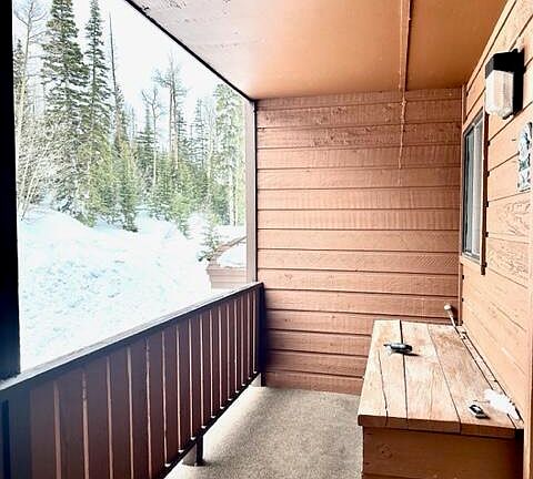 Seller is motivated! Evergreen has one of the best locations in Brian Head. Ski to the chair & ski back to the complex. The truly unique quality in this condo is you can shut a large door & make a 2nd bedroom of leave it open to have a larger family room. There could be 2 entrances in this unit & possibly 2 rentals & also 2 decks! one on the front & another on the back side where the view of the pond & chair 1 is amazing. this is a 2nd floor unit & a parking garage for this building. The Evergreen common area has a game room for summer & winter fun. Seller is motivated!