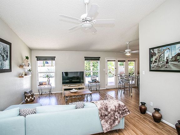 Charming home with bright open floor plan in quiet neighborhood. Many upgrades in this home. Newer kitchen cabinets, newer dishwasher and disposal. All windows, back french door and front door have been replaced. New AC in 2019 and Nest thermostat, pool re-plastered in 2020, shingle roof in 2011 with lots of life left to it! Master bedroom has walk-in closet and french doors leading to the pool area. Backyard is an entertainers delight, with a large sparkling pool, covered patio with pass-thru to kitchen, artificial grass, paver patio with gas fire pit, RV gate and a north/south exposure. A real must see!! Won't last long!
