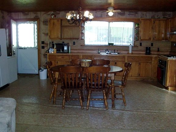 Very private acres with lots of game; Open floor plan in kitchen and living room areas; furnishings and appliances convey; front deck; rear porch; 4-car carport; storage building; mountain views.