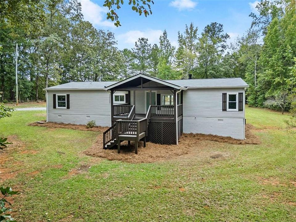 Welcome to 561 Worsham Rd! Step into this completely renovated 3-bedroom, 2-bath manufactured home, perfectly situated on 3 private acres. This spacious, move-in ready property offers a serene setting with modern upgrades and thoughtful design throughout. As you approach, a covered front porch welcomes you into the home, where you'll find brand new LVP flooring, fresh paint, upgraded hardware, and stylish lighting fixtures. The living room serves as the heart of the home, featuring a stunning fireplace that creates a warm and inviting focal point, perfect for cozy nights in or entertaining guests. The massive kitchen boasts freshly painted cabinets, beautiful quartz countertops, and an abundance of storage. A large kitchen island with bar top, a side wet bar, and breakfast bar all offer plenty of space for meal prep and entertaining. This home has two dining space options, both of which are conveniently located off the kitchen. The master bedroom is a true retreat, featuring a large walk-in closet and an en-suite bathroom complete with a double vanity, a luxurious tiled soaker tub, and a separate sliding glass shower. A sliding glass door from the large living room opens onto a spacious, covered back porch with wrap-around bench seating, perfect for enjoying your morning coffee or hosting outdoor events. Just off the porch, you'll find a newly constructed wooden deck that surrounds the above-ground pool, making it an ideal spot for summer fun and relaxation. No need to stress about wet pool attire tracking through the house with the thought out floor plan including private entry into the laundry room right off the back porch. Newly installed roof and gutters add to the exterior appeal of this home. In addition to the home's many features, the property includes a 30x12 enclosed workshop with power and a covered awning off the back, perfect for additional storage or workspace. There is also a second shed for extra storage and a large covered awning ideal for RV or boat parking. The property is equipped with a brand-new private well, a freshly-graveled driveway, and mature landscaping that enhances its peaceful, private atmosphere. This home is perfect for those seeking modern comfort, ample space, and an outdoor lifestyle-all in a secluded and beautifully landscaped setting.