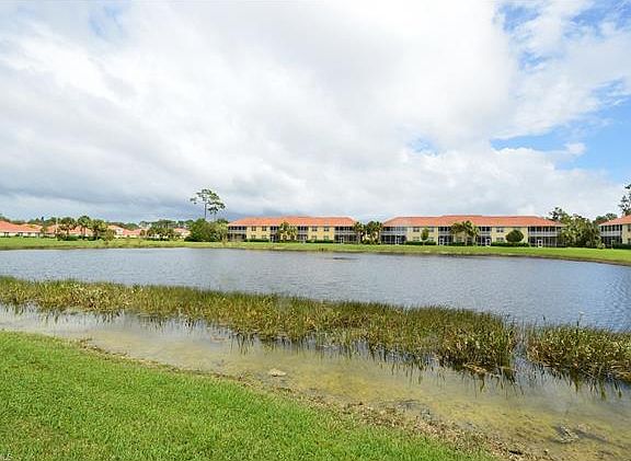 C.13987 - Ground floor, end unit, updated condo in Bell Tower Park! 3 bedrooms; 2 1/2 baths; 2 car garage; and a large wrap around screened lanai with an Easterly exposure overlooking a lake. Tile in main living area with carpet in bedrooms, custom window coverings, 8 ' doors, 10' ceilings in main living areas, crown molding, the kitchen appliances upgraded & replaced within the last year...very clean. Brand New, High Efficiency 16 Seer A/C, both Compressor & Air Handler, just installed! This is the newest phase of the development with interior fire sprinklers & High impact glass on all windows and doors - no need for hurricane shutters. Bell Tower Park is a gated community located just 1 mile south of the Bell Tower Shops. Amenities include clubhouse with catering kitchen, pool table and TV; fitness center; 2 heated pools/spas; tennis courts; basketball, pickle ball and more! Convenient to airport, beaches, shopping, entertainment and both Minnesota Twins and Boston Red Sox Spring Training! Dogs are welcome. NO CDD or City Taxes! Seller is very motivated.